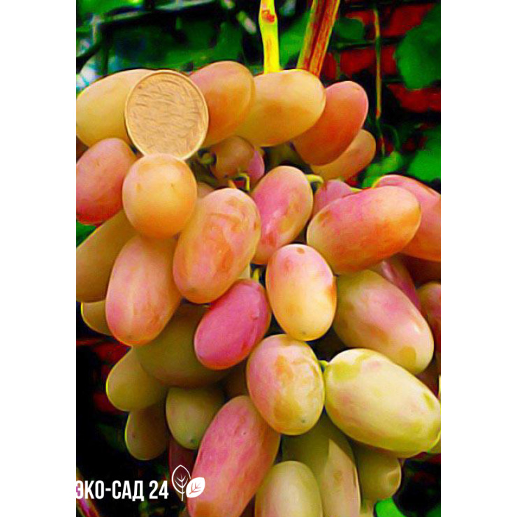Сорт винограда "Виктор" - этот сорт не зря относят к категории «Премиум»! отличается сверхранним вызреванием урожая - первые грозди, усыпанные вкуснейшими ягодами, появятся на вашем столе уже через 3 месяца после появления цвета. Цветки обоеполые, что позволяет сорту опыляться самостоятельно. Грозди очень крупные, мощные, массой до 700-1500 граммов. Ягоды мясистые, продолговатой яйцевидной формы, порой просто огромные, масса каждой составляет порядка 16-18 грамм. Кожица тонкая, но упругая, цвет варьируется от желтовато-розового до сиреневого. Мякоть плотная, сочная, благородного десертного вкуса.